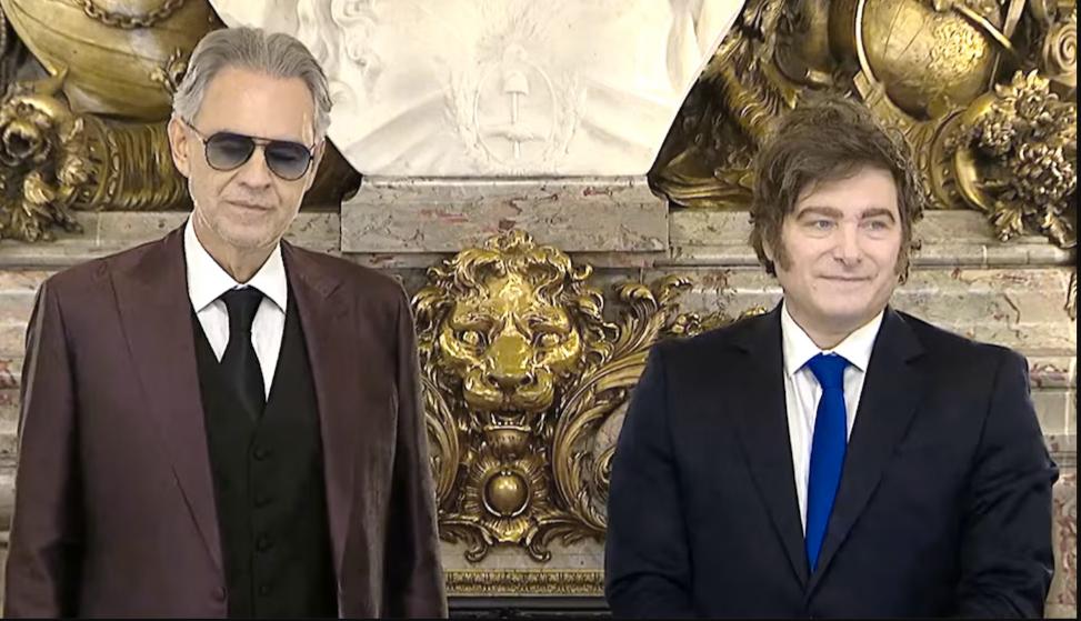 El presidente Javier Milei recibió esta mañana al músico italiano Andrea Bocelli, quien se encuentra en el país luego de brindar una serie de shows
