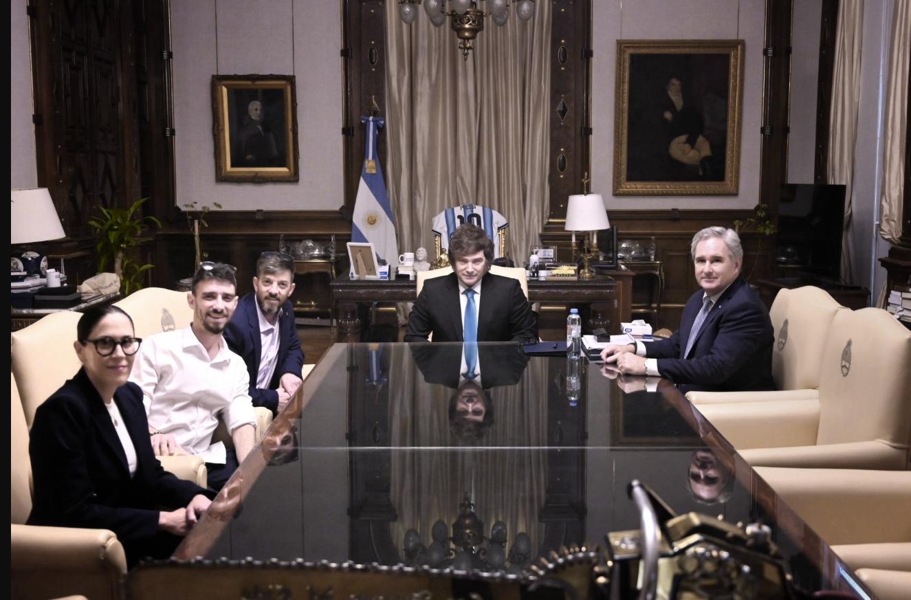 «El presidente Javier Milei, junto al canciller Pablo Quirno, recibió en Casa Rosada a los hermanos argentinos David y Ariel Cunio, secuestrados por Hamas el 7 de octubre de 2023 en el kibutz Nir Oz y liberados en octubre del 2025 gracias a las gestiones de paz del presidente Donald Trump», expresó el Gobierno argentino en un comunicado.