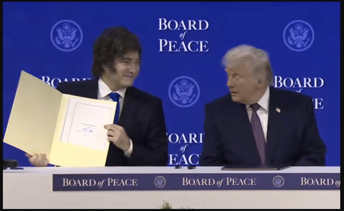 En su paso por Suiza, a donde viajó para participar del Foro Económico de Davos, el presidente Javier Milei asistió este jueves a la ceremonia que dio lugar a la firma del Consejo de la Paz creado por Donald Trump.