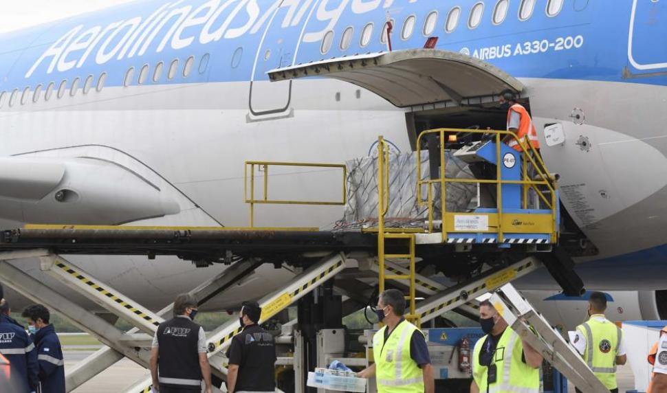 El Airbus 330-200, matrícula LV-GIF, tocó tierra con 240 mil dosis de la vacuna desarrollada por el Centro Gamaleya de Rusia, de las cuales 220 mil tienen como destino a Argentina y las 20 mil restantes fueron derivadas a Bolivia, hacia donde las trasladó un avión de la empresa Boliviana de Aviación que partió de Ezeiza a las 15,12 con destino a La Paz.