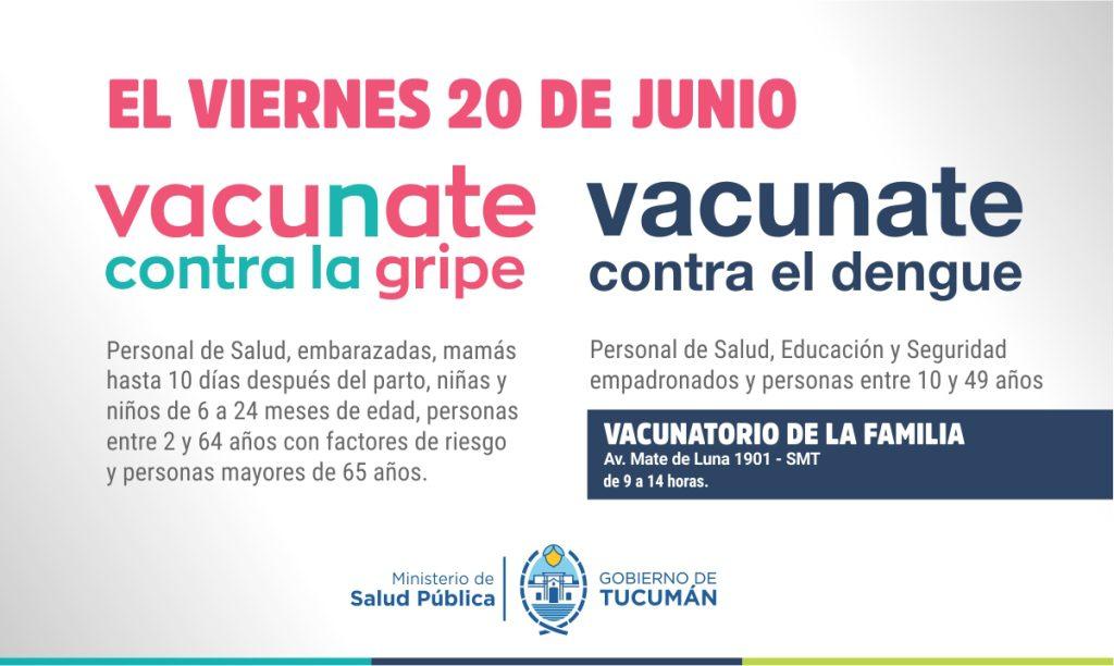 Este sábado 20 de junio, el Ministerio de Salud Pública de Tucumán llevará adelante una nueva jornada de vacunación gratuita destinada a prevenir dos enfermedades estacionales: la gripe y el dengue.