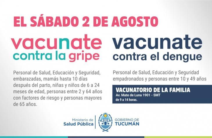 Este sábado 02 de agosto, el Ministerio de Salud Pública de Tucumán llevará adelante una nueva jornada de vacunación gratuita destinada a prevenir dos enfermedades estacionales: la gripe y el dengue.