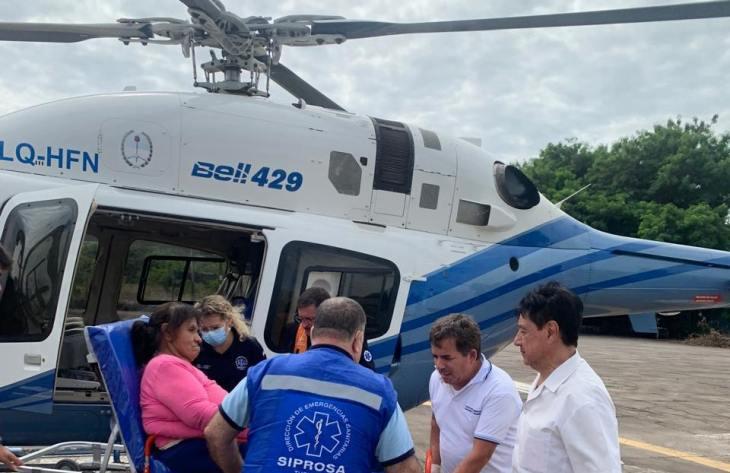 Posteriormente, la paciente fue derivada hacia el helipuerto del 107 y desde allí trasladada al Hospital Centro de Salud, donde continuó su atención en un centro de mayor complejidad.
