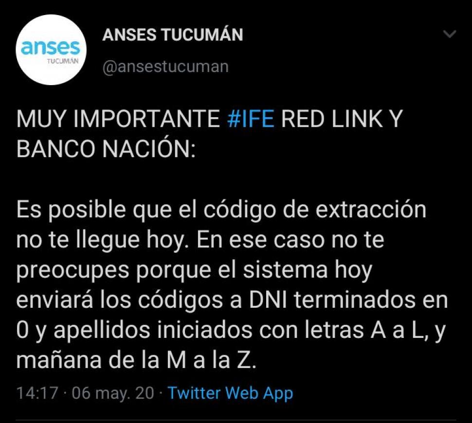 Si es tu turno de cobrar el Ingreso Familiar de Emergencia y no te llegó el código no te preocupes, el sistema enviará los códigos de los DNI, terminados en 0 y apellidos iniciados con la letra A hasta la L