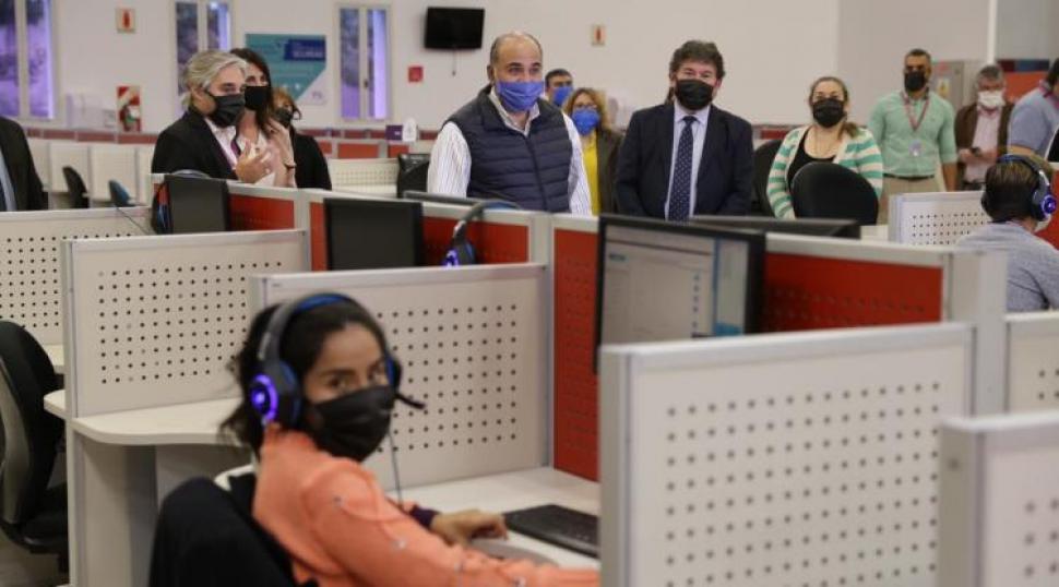 El gobernador, Juan Manzur, visitó las oficinas de la empresa de call center Teleperformance para supervisar cómo se trabaja con el protocolo sanitario, respetando la distancia social.