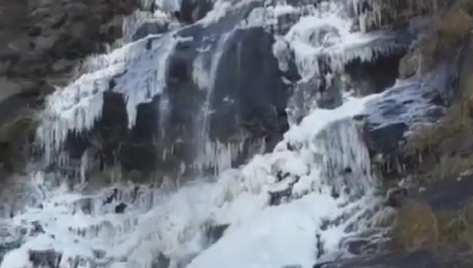 Ayer por la tarde uno de los puntos conocido como Cascada de los Alisos, a 15 kilómetros de la villa de Tafí del Valle, por la cual fluye el desvío del agua que baja del cerro, quedó congelada.