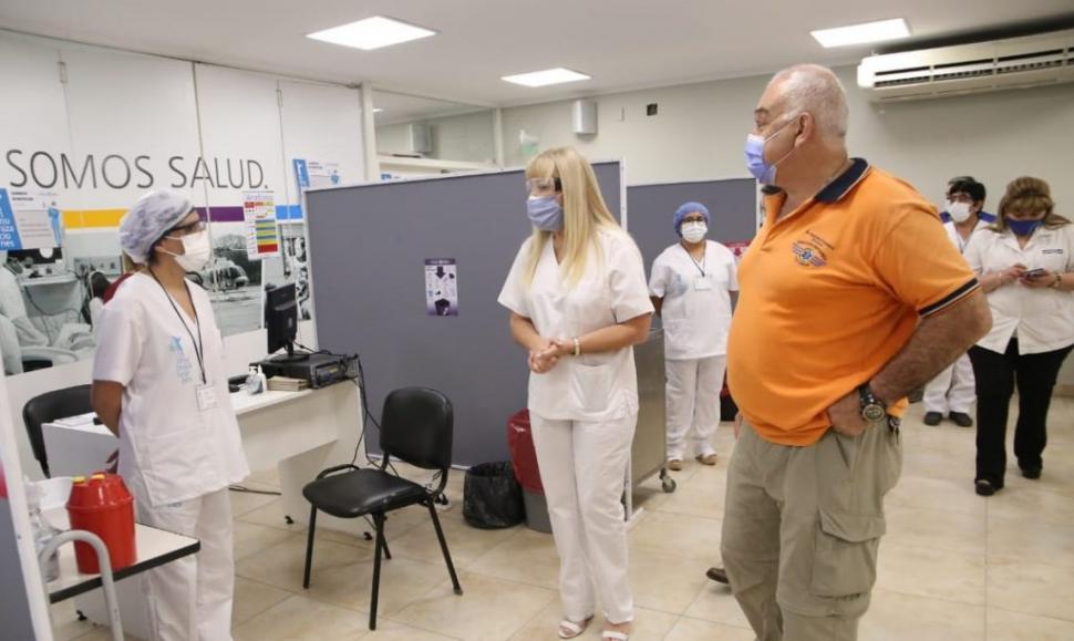 Uno de los nodos de inmunización de la provincia es la Dirección de Emergencias y allí estuvo hoy la ministra de Salud Pública, doctora Rossana Chahla, quien felicitó al responsable del área, doctor Francisco Barreiro, y a todo su equipo por el trabajo que vienen haciendo