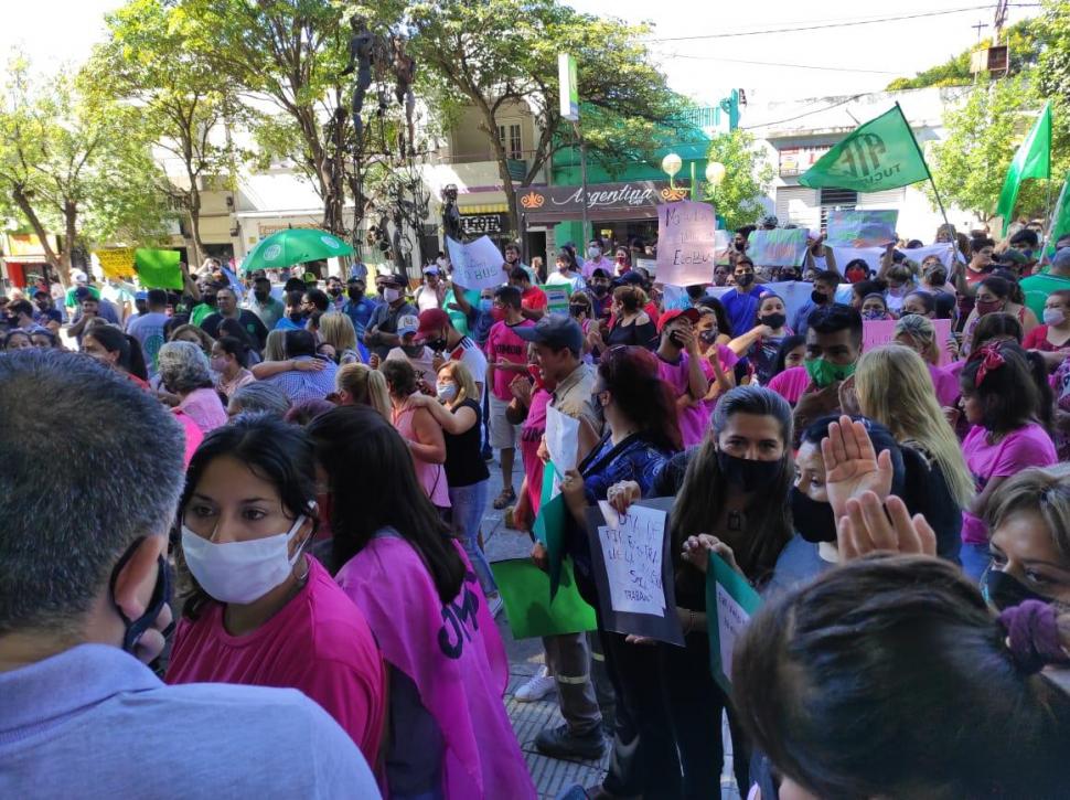 Los manifestantes coparon la avenida Alem, mientras los empleados municipales cortaron el tránsito vehicular en esa zona. La protesta contra la decisión de los ediles que votaron por la derogación se realiza sin incidentes.