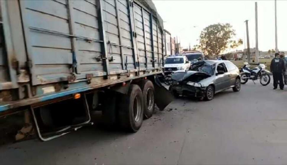 Un Volkswagen Gol chocó esta mañana contra el acoplado de un camión que estaba estacionado sobre la colectora oeste de la avenida Urbana en la ciudad de Concepción