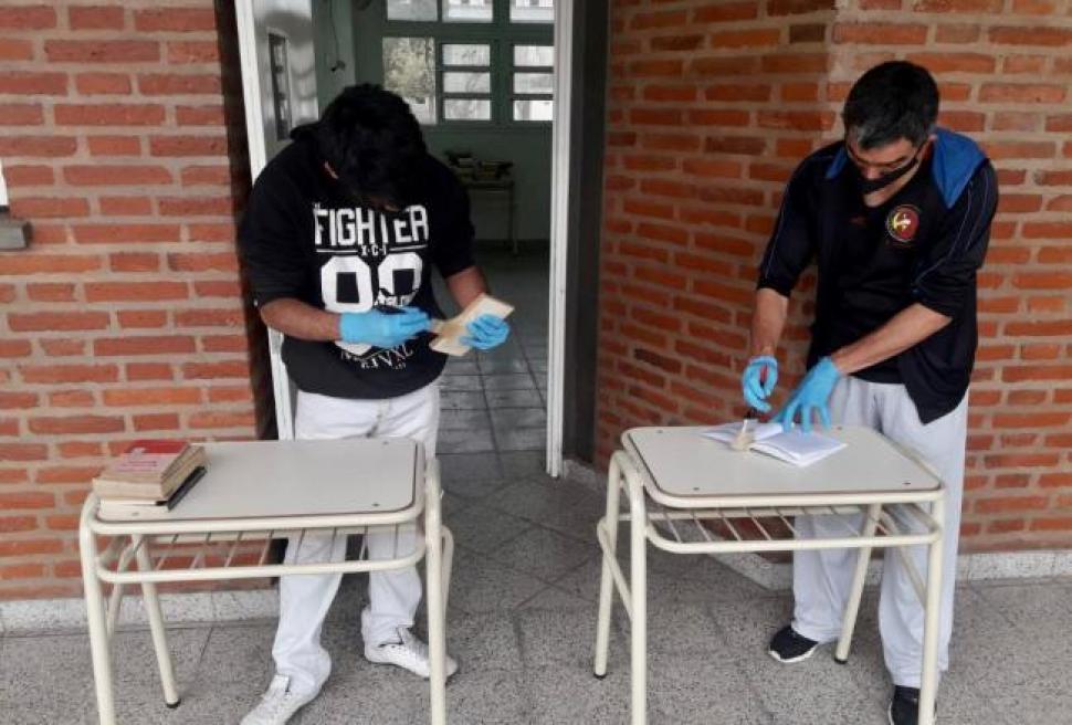Bibliotecarios de la Modalidad de Educación en Contextos de Encierro, que dependen de la Dirección de Educación de Jóvenes y Adultos, avanzan en el acondicionamiento de las bibliotecas en los edificios de las escuelas del Penal de Villa Urquiza Carlos Ávila y Paola Ávila, junto a estudiantes que colaboran con trabajos de herrería y carpintería, trabajan a ritmo acelerado para concluir con tareas interrumpidas por la pandemia traslado de material, limpieza, mantenimiento, restauración, catalogación.