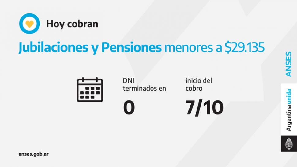 ANSES informó que hoy se abonan Pensiones No Contributivas (PNC), jubilaciones, pensiones, Asignación Universal por Hijo, Asignaciones Familiares y los programas Alimentar para Madres de 7 hijos, Hogar, Alimentario PAMI y Acompañar.