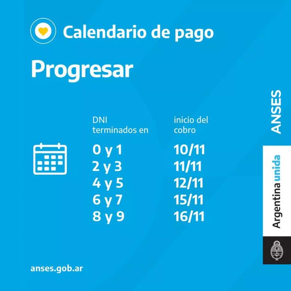 El cronograma de pago de Noviembre del Progresar, el programa de acompañamiento a los y las jóvenes para que finalicen sus estudios primarios o secundarios, continúen en la educación superior o se formen profesionalmente.