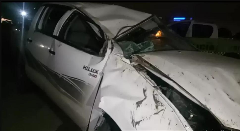 Cerca de las 21.30 de este sábado una camioneta Toyota Hilux blanca volcó en la Ruta Nacional N°9 a la altura del cementerio Jardín del Ángel, en San Ramón y Autopista.