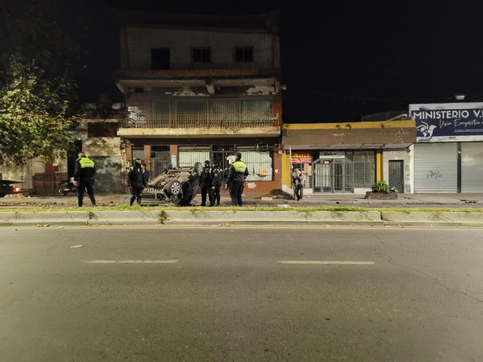 Alrededor de las 3.30, un automóvil chocó a otro vehículo que estaba estacionado y volcó, su conductor sufrió politraumatismos y fue trasladado para recibir asistencia médica en el hospital Padilla.
