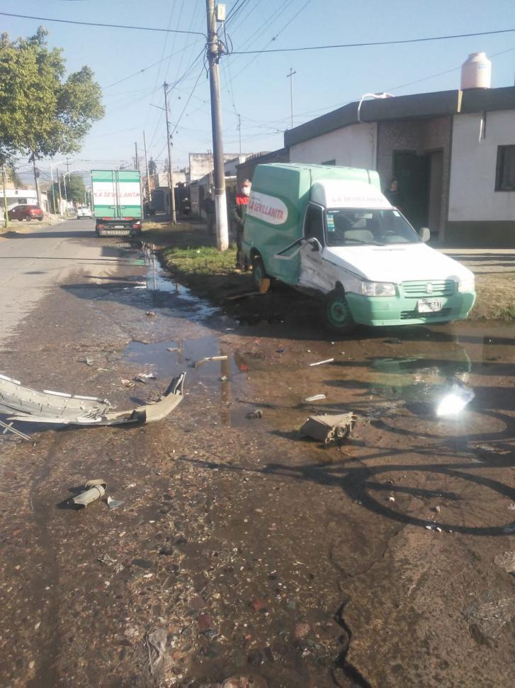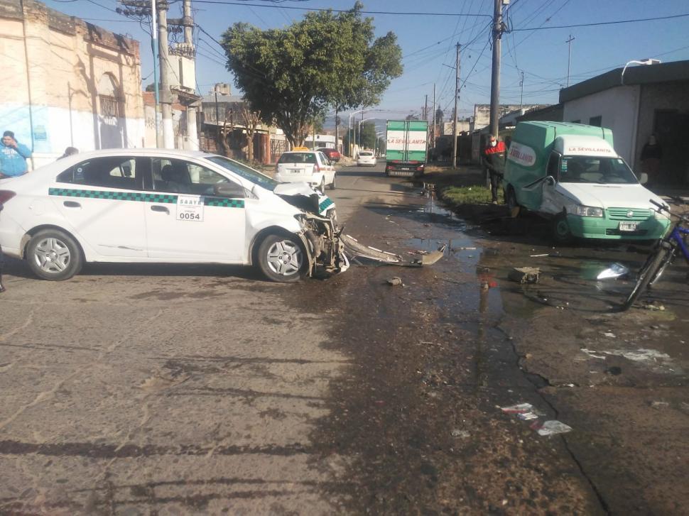 Hace unos instantes se produjo el choque entre un taxi con licencia de Yerba Buena y una camioneta que ofrecen traslados.