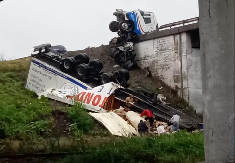 Según el reporte policial, el rodado circulaba de Norte a Sur y al llegar al lugar antes indicado, el conductor perdió el control produciendo que el mismo rodado volcara, quedando el camión colgado del puente desde su cabina, cayendo al vacío de dicho puente su semi-remolque con toda la mercadería.