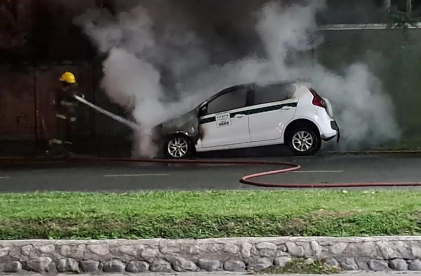 Un taxi se incendió esta madrugada sobre avenida Aconquija, en Yerba Buena, y una dotación de bomberos se encargó de extinguir las llamas