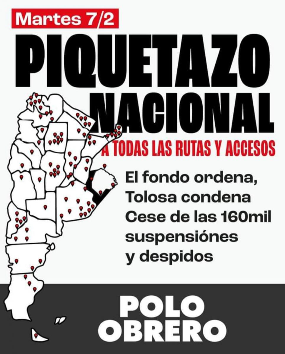 Hoy martes 7 de febrero salimos en una jornada nacional con cortes de acceso y de rutas desde Tierra del Fuego hasta La Quiaca. Informa el comunicado