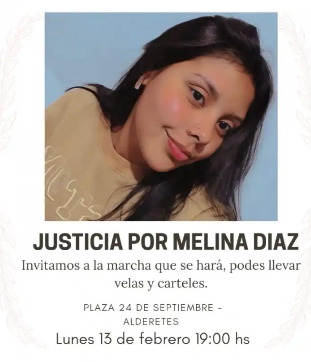 Familiares y amigos de la joven Melina Diaz llevarán a cabo hoy lunes 13 de febrero a las 19 horas en la plaza 24 de septiembre en la ciudad de Alderetes, una movilización pacífica