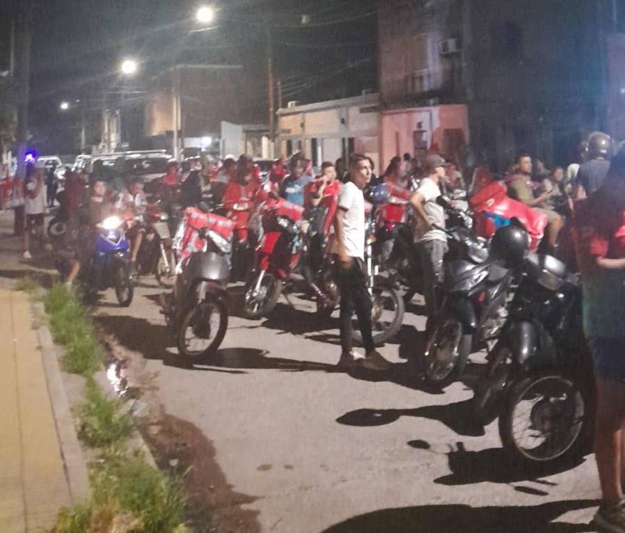 Cansados de ser asaltados durante sus horarios de trabajo, un grupo fue a reclamar en Matienzo entre Roca y Rondeau, donde creian que estaban vendiendo partes de la moto que le habian robado a un cadete