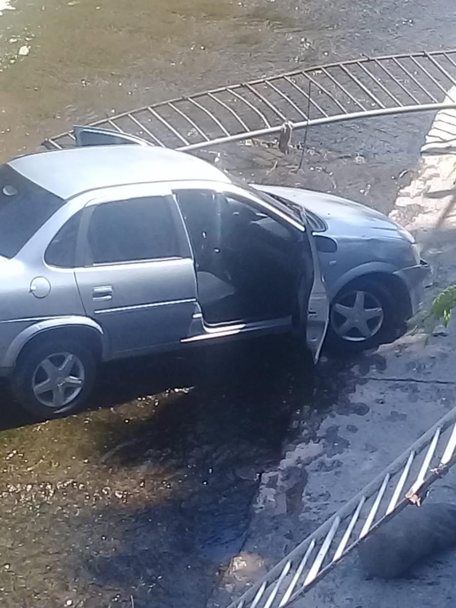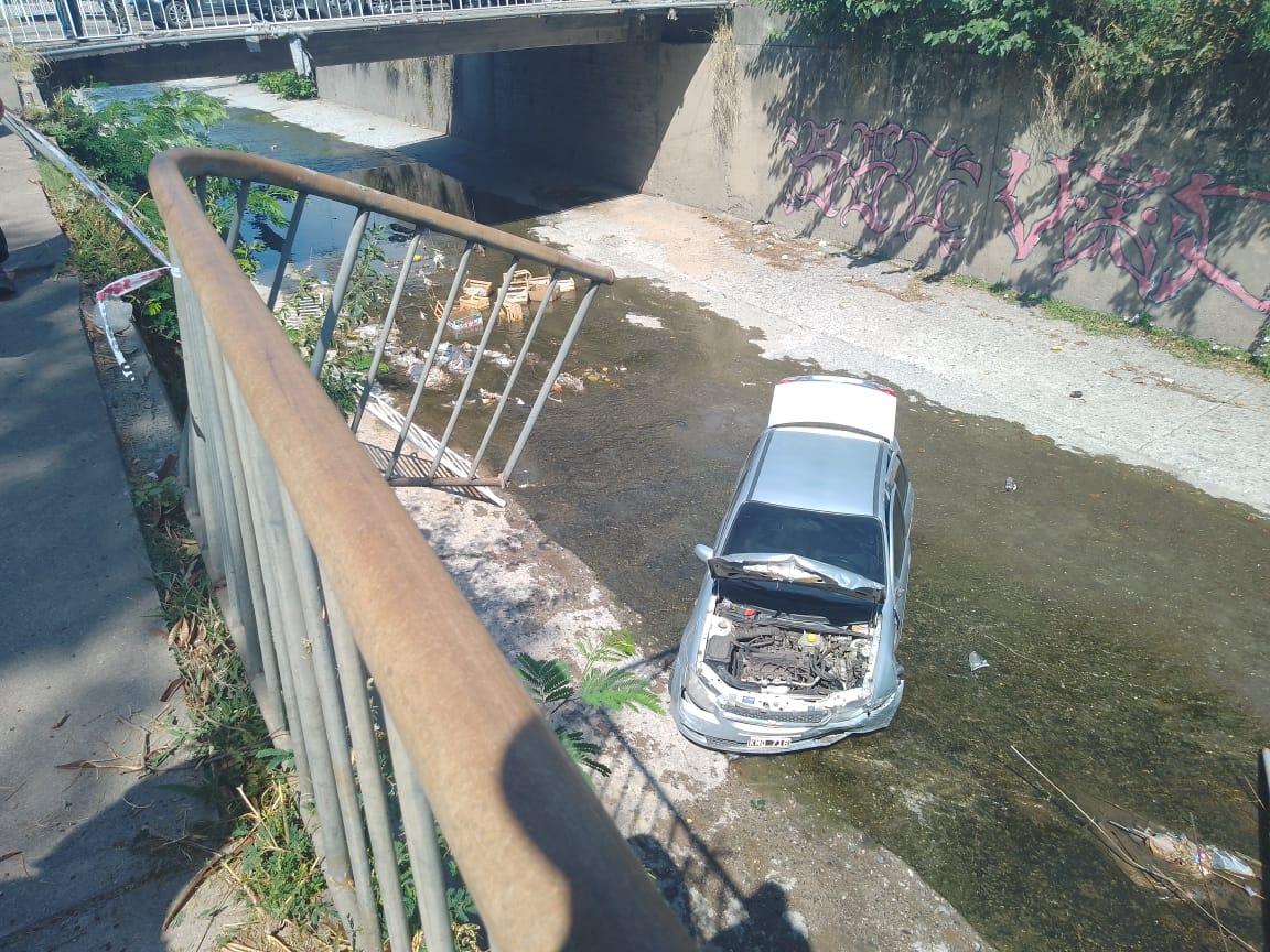 Un automóvil cayó al lecho del Canal Sur este jueves poco antes de las 11 de la mañana, luego de ser embestido por otro vehículo