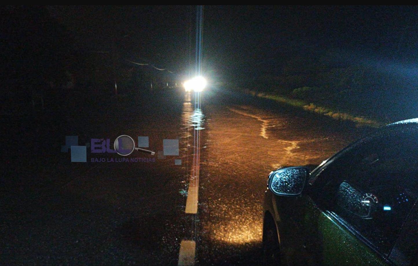 Anoche ante de las once, se procedió a realizar los cortes de manera total en la Ruta Nacional 38 debido a la gran cantidad de agua caída que desborda por arriba de la cinta asfáltica, desde la Comuna El Sacrificio hasta zona del Rio Marapa.
