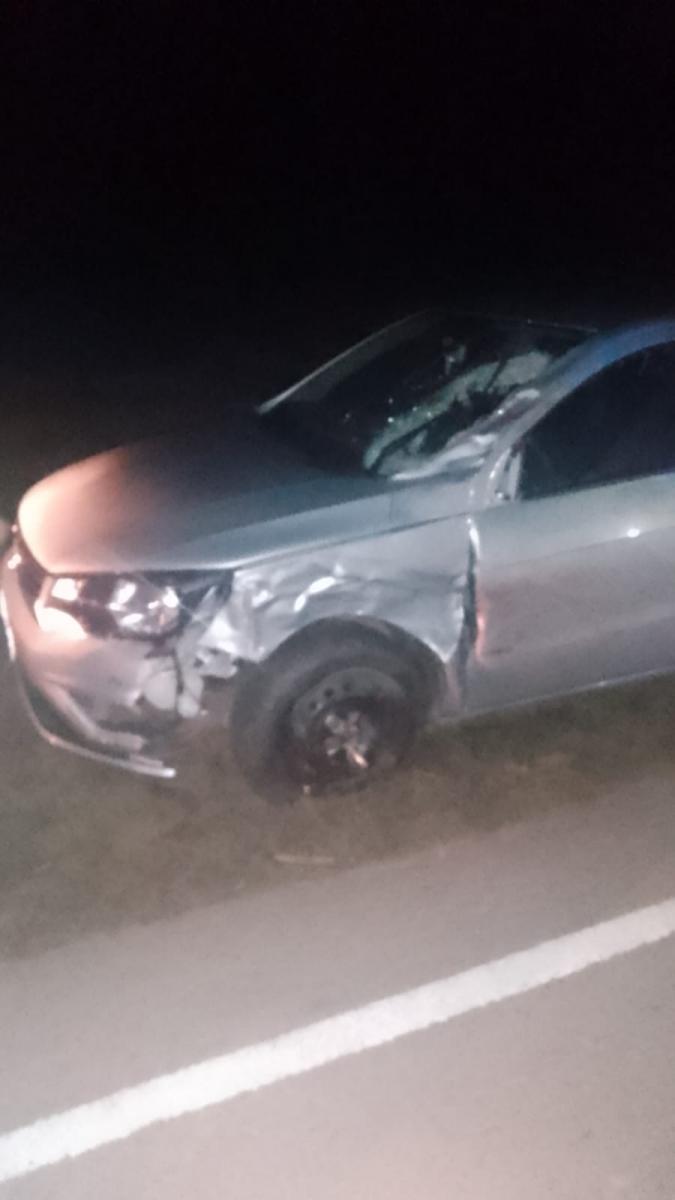 Durante las primeras horas de esta mañana aproximadamente a las 06:40 horas, en la Ruta 304 KM 37 por razones que se tratan de establecer se produjo un accidente entre un automóvil de marca Volkswagen Gol Trend, manejado por Walter Antonio Verón, impactó contra una motocicleta Honda CG Titan, que era conducida por Leonardo Olea.