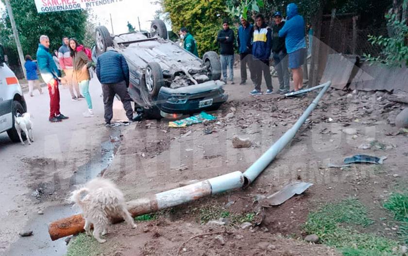 Un hombre que conducía un VW Gol por una calle interna del barrio, chocó de frente contra una columna de alumbrado público. El auto quedó ruedas para arribas por la violencia del hecho
