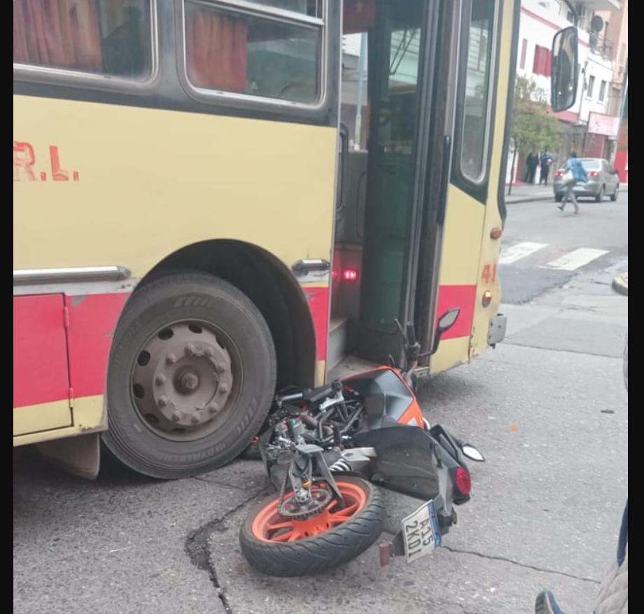 Esta mañana se produjo un choque entre un colectivo de la línea 7 y una moto en calle Córdoba y Junín