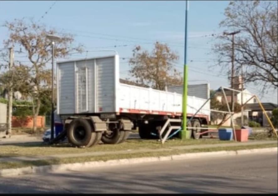 El acoplado terminó cerca de un poste de alumbrado público y de unos bancos de cemento.