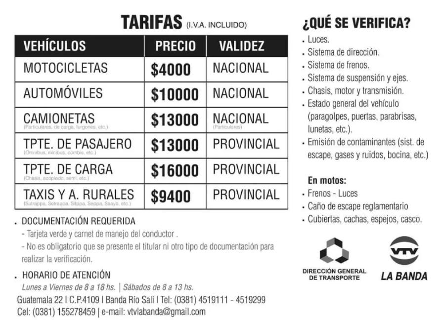De acuerdo a información que fue publicada en las últimas horas, el control obligatorio que deben realizar todos los vehículos de Tucumán sufrió un aumento tremendo, ya que por la tarifa para las motocicletas pasó de $2000 a $4.000; para autos, de $5000 a $10.000; camionetas, de $6500 a $13.000; ómnibus, combi y minibus, el salto fue de $6500 a $13.000; autos rurales y taxis, $4700 a $9.400. Por último, el control de los transportes de carga, pasó de $8000 a $16.000.