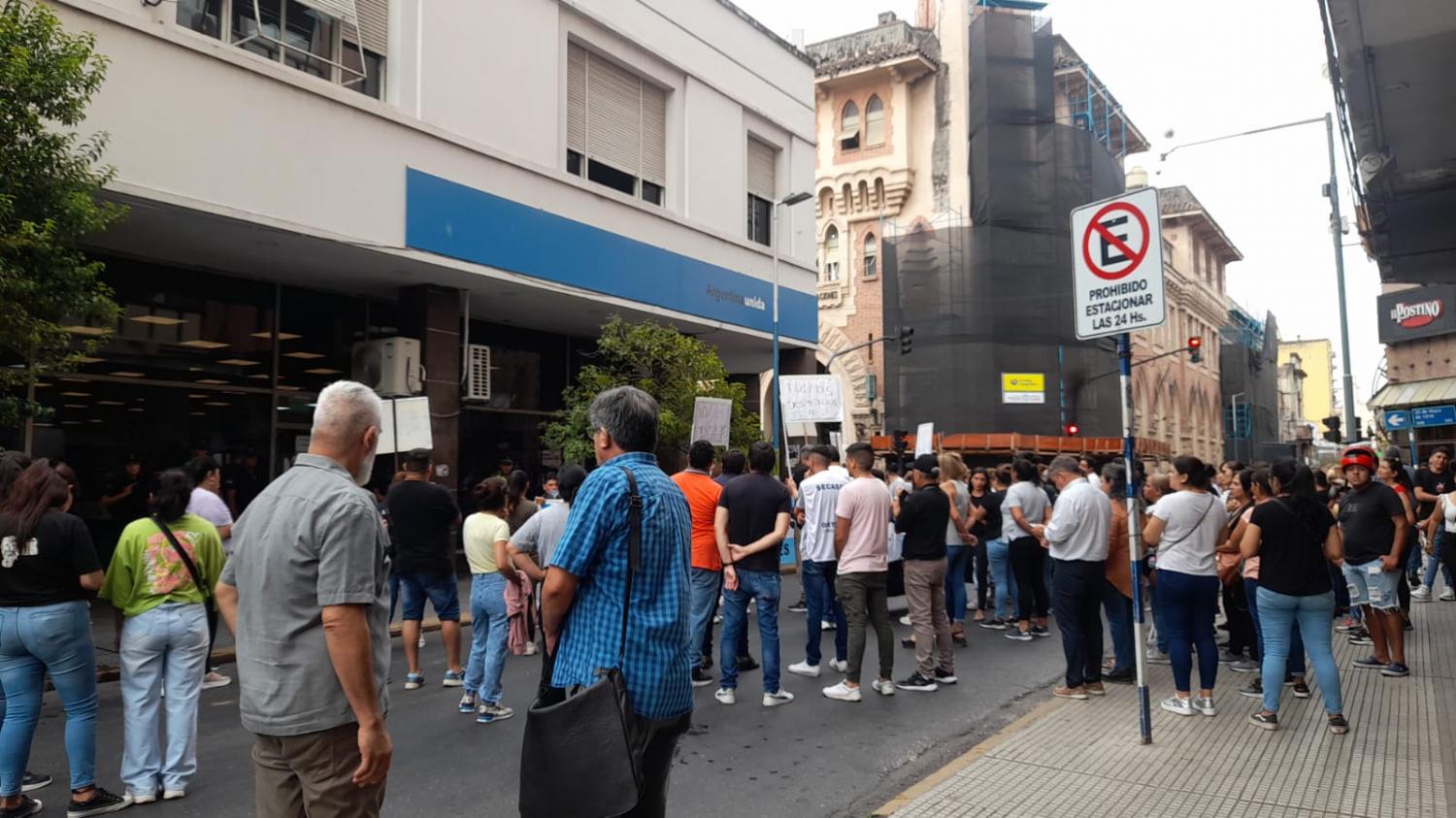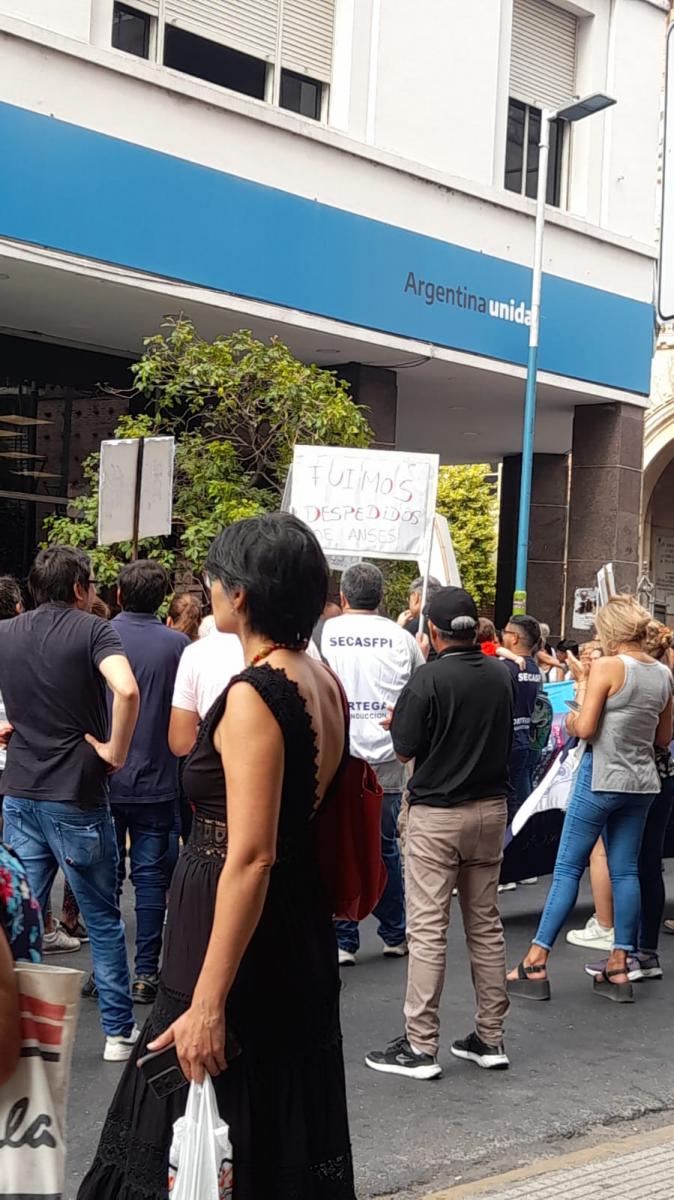 Los ex empleados de ANSES reclaman enfrente de la institución y bloquean la circulacion de las calles.