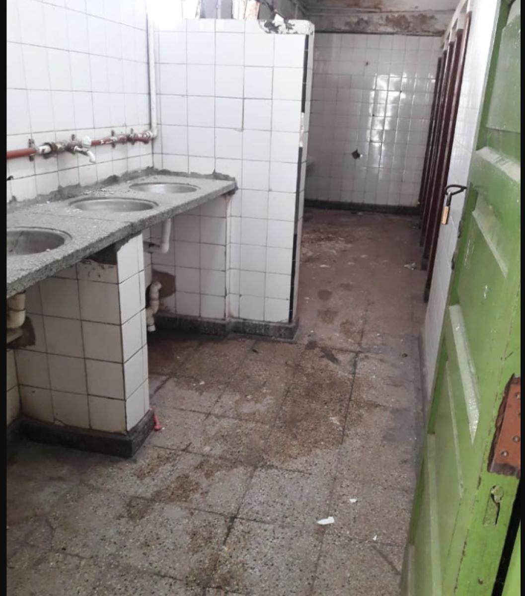 En las imágenes se puede observar claramente el mal estado de los baños, sin puertas pozos abiertos, cables sueltos, grados sin ventanas