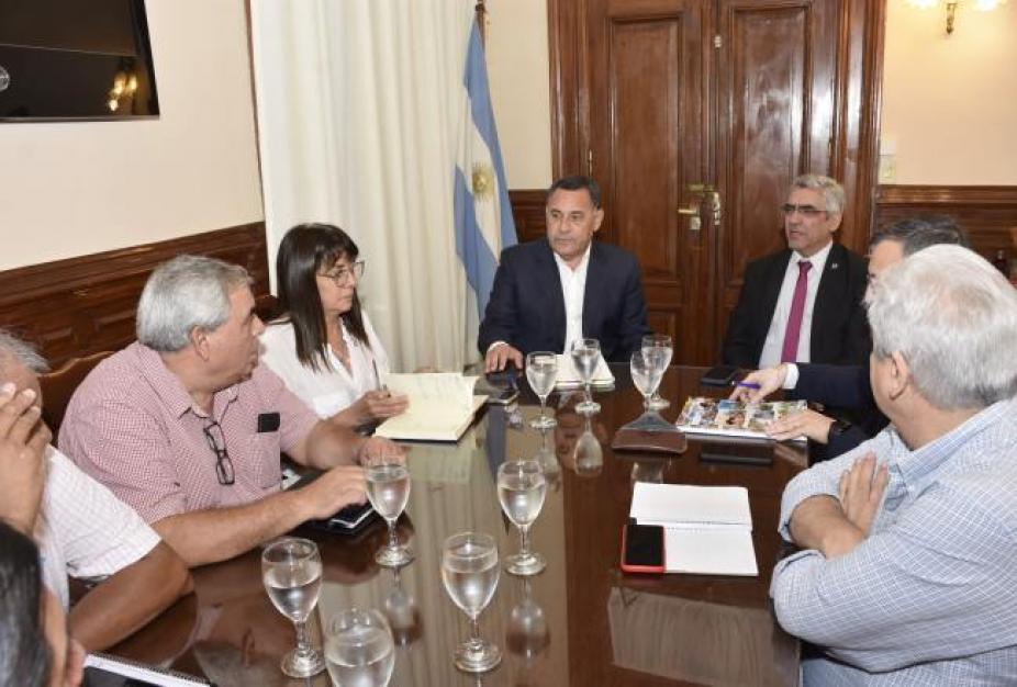 Los ministros de Gobierno y Justicia, Regino Amado, y de Economía, Daniel Abad, se reunieron ayer con los representantes de ATEP, Apemys, AMET y UDT
