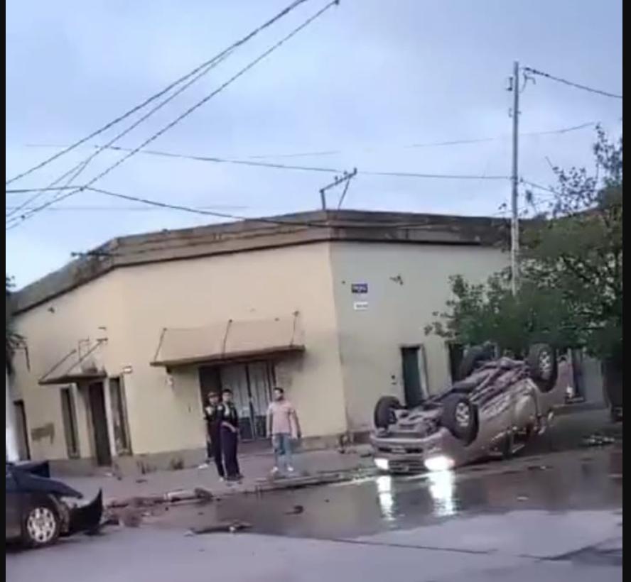 Hace instantes se registró un accidente entre dos vehiculos en Rivadavia y Perú, por motivos que aún se desconocen los dos vehículos impactaron fuertemente que uno de ellos volcó