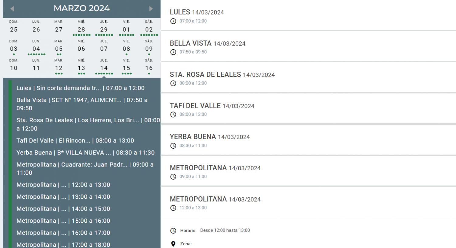 EDET informó los cortes de luz para este jueves 14 de marzo