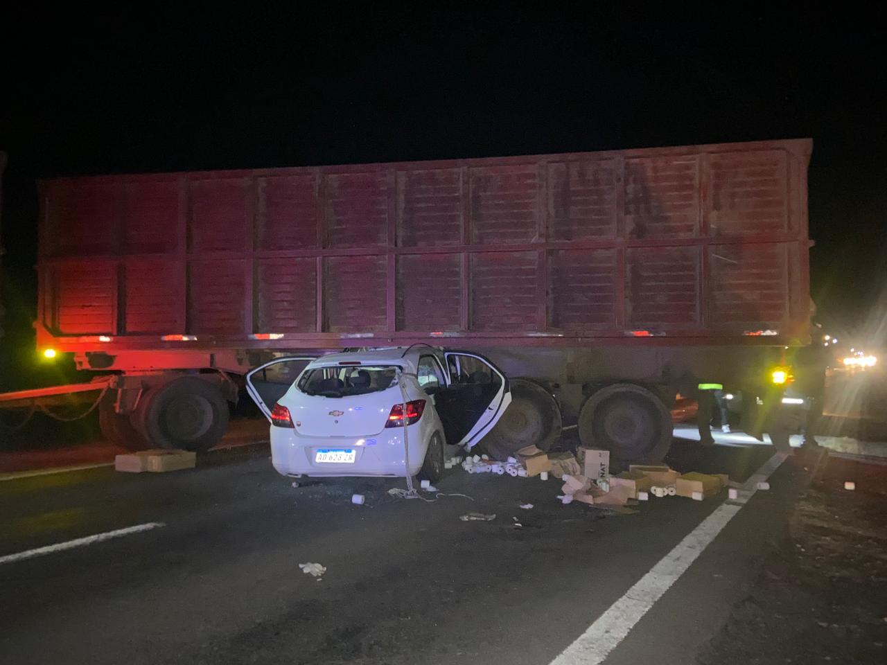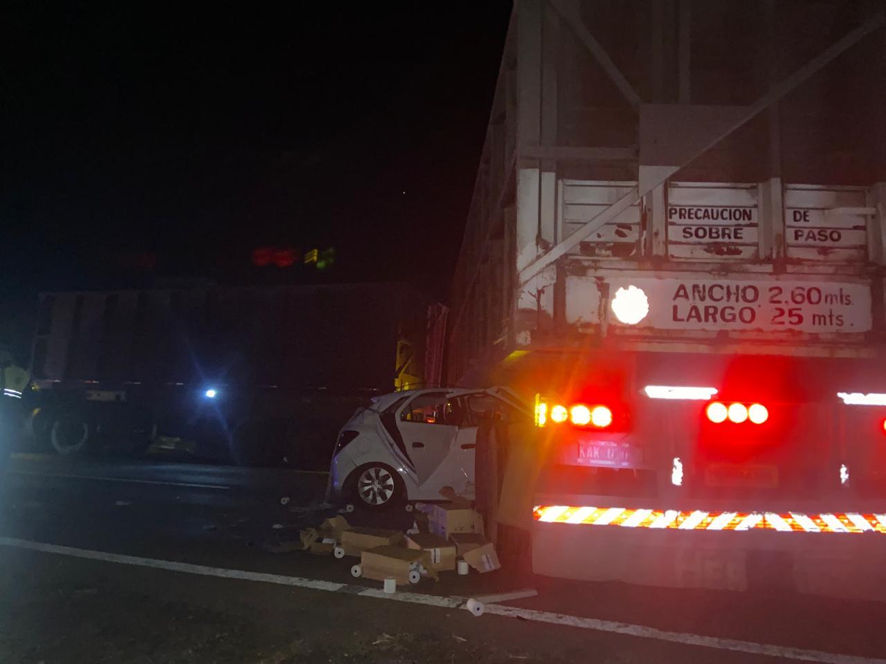 Anoche aproximadamente a las 23:20 horas el personal policial perteneciente a la comisaria de Los Puestos fueron notificados sobre este accidente entre una rastra cañera con semi acoplado marca Volvo y un auto Chevrolet Ónix color blanco