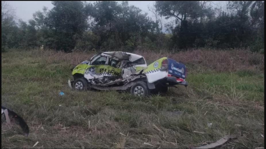 El móvil policial estaba sin ocupantes y el conductor del otro vehículo, una camioneta Ford Ranger, fue trasladado a un centro asistencial por una ambulancia del 107.