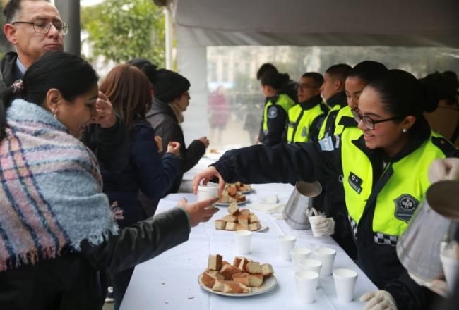 Desde las 9.30 se realizó el tradicional chocolate que brindaron cadetes de la Escuela de Policía en la Plaza Independencia en conmemoración de los 208 aniversario de la Declaración de la Independencia.