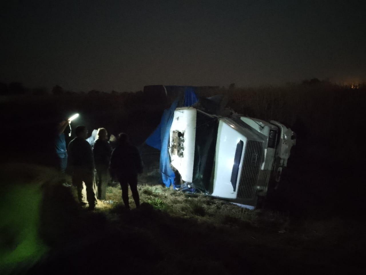 Por causas que aún se tratan de establecer cayó en la banquina quedando el mismo volcado sin obstruir el tráfico de la ruta, ambos conductores solo sufrieron lesiones leves, solo hubo daños materiales
