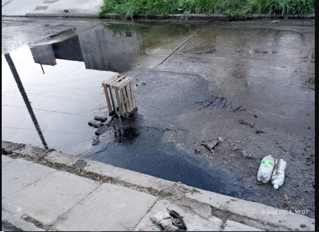 Un vecino de la zona nos envió una imagen sobre el estado en el cual se encuentra una calle con liquido cloacal, claramente podemos observar que se encuentra con basura y con derrame se agua servida.