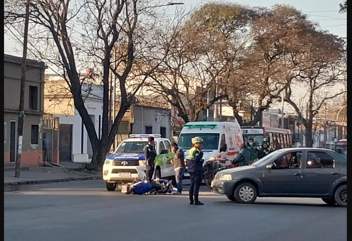 Por motivos que aún se desconocen hace instantes hubo un accidente entre un auto y una moto en Avenida Juan B Justo