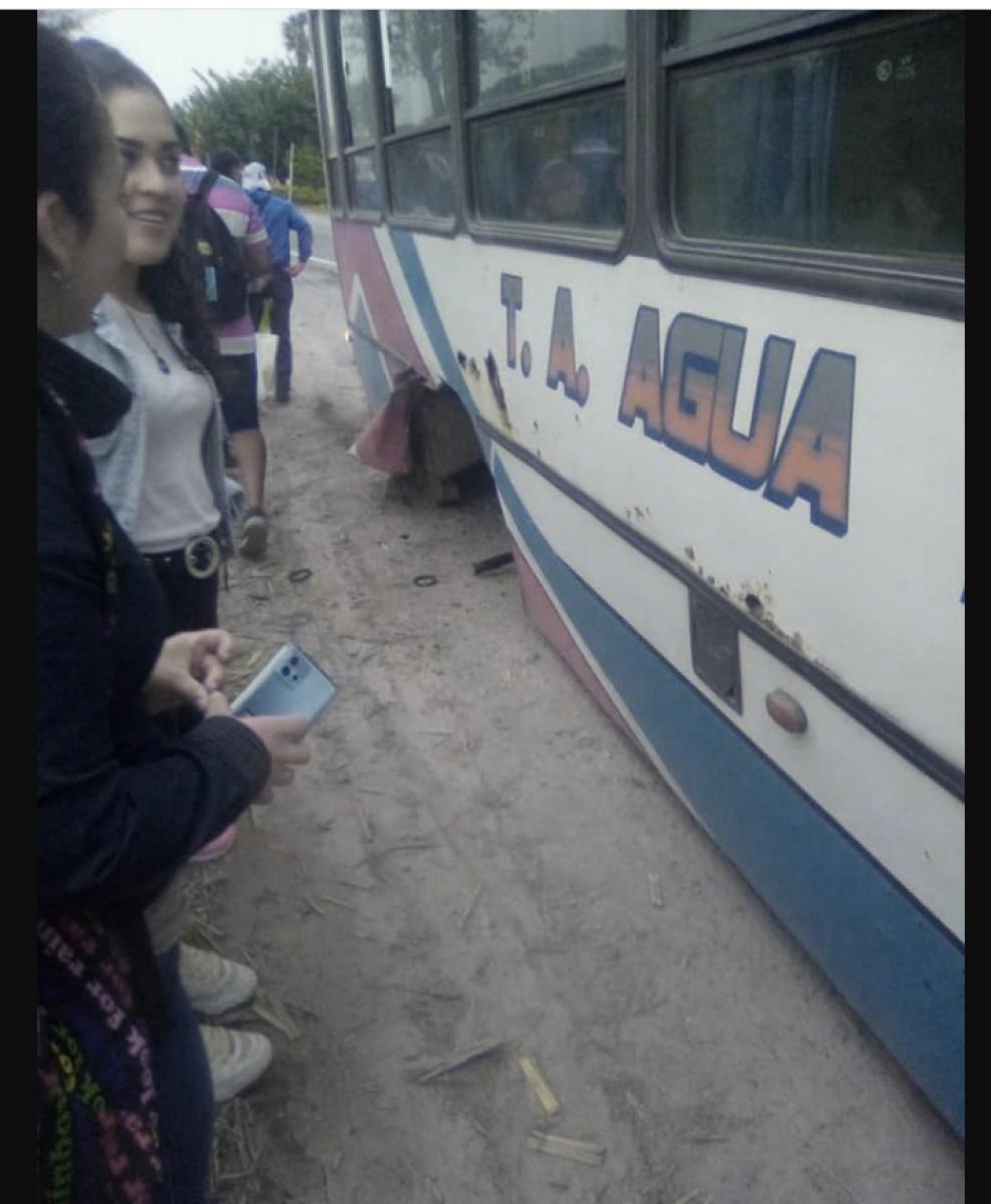 Esta mañana una pasajera contó el mal momento que pasaron debido a que se desprendió la rueda del colectivo de la empresa "Agua Dulce" cuando transportaba a vecinos de la localidad de Ranchillos Viejo, El Naranjito, Cóndor Huasi y Camas Amontonadas.