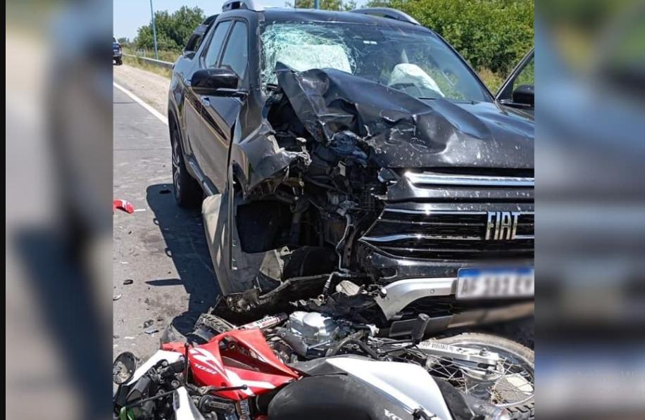 El choque se produjo de frente entre una motocicleta y una camioneta (Fiat Toro), aunque los peritos todavía no han podido determinar las causas