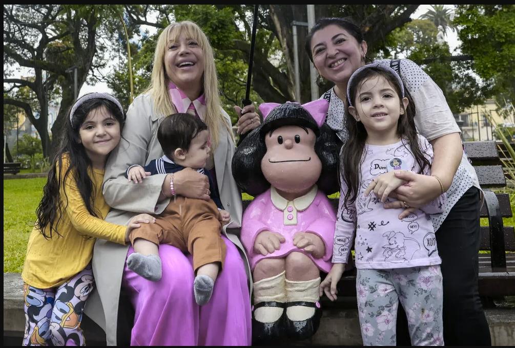 La jefa municipal estuvo acompañada por funcionarios de su gabinete y por el reconocido artista Pablo Javier Irrgang, quien esculpió la imagen del icónico personaje creado por Quino