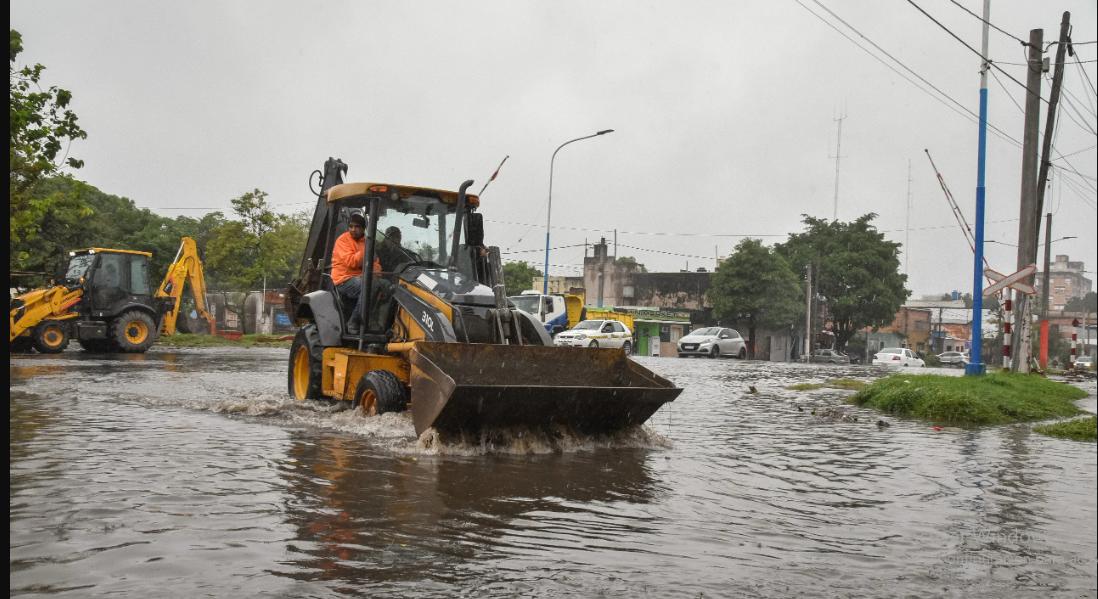 Más de 50 operarios de las secretarías de Obras Públicas y Servicios Públicos, con el apoyo de camiones volquetes, palas cargadoras, bateas y retropalas, llevan adelante las tareas de limpieza y desobstrucción de imbornales en 25 puntos de la ciudad donde se acumuló agua de lluvia. Los trabajadores retiraron varias toneladas de residuos y sedimentos de la vía pública, que obstruían los sistemas de desagüe, lo que ocasionó anegamientos. Las tareas continuarán durante toda la jornada del sábado, hasta tanto cesen las condiciones meteorológicas que en las últimas 24 horas provocaron la caída de más de 60 mm de agua de lluvia en la capital y sus alrededores.