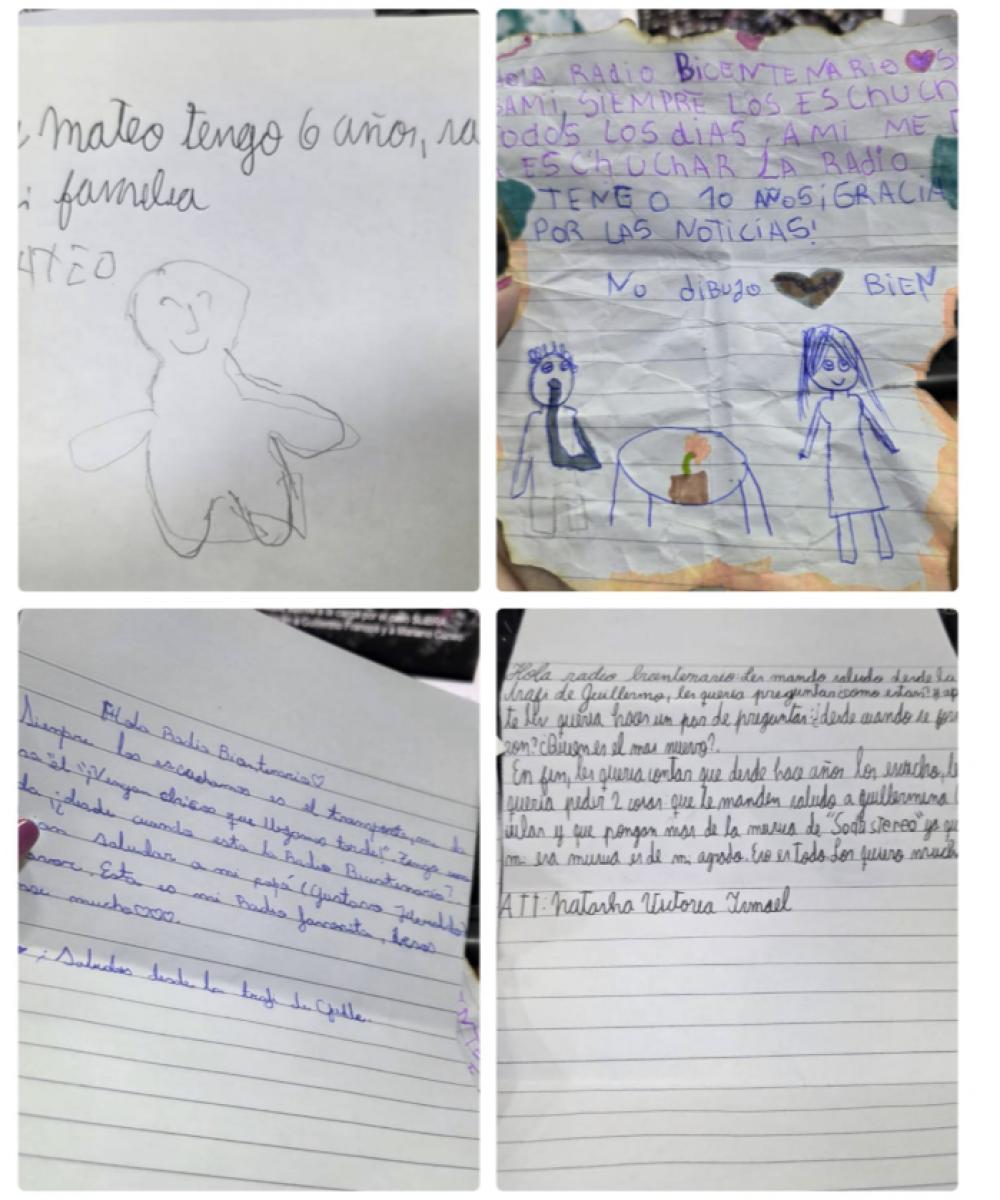 Durante las primeras horas de esta mañana, cuatro niños nos mostraron sus cartas y dibujos desde la ventana de nuestros estudios en la esquina de Marcos Paz y Asunción
