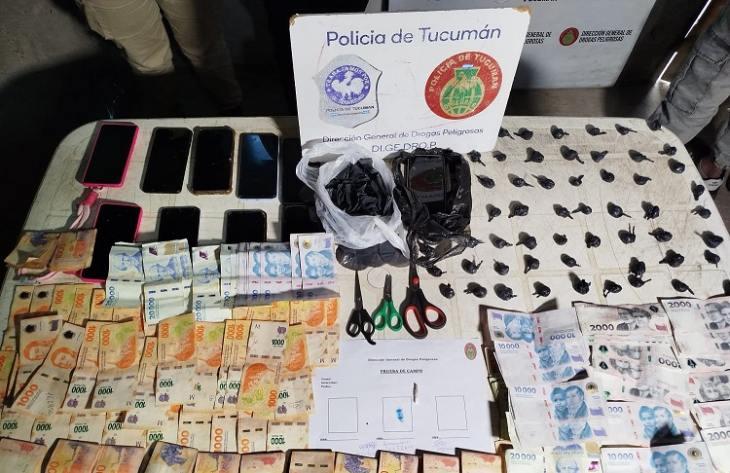 Por orden judicial policías irrumpieron en dos domicilios en donde se secuestró marihuana, alrededor de $700.000, diez celulares y hay una aprehendida y dos personas demoradas