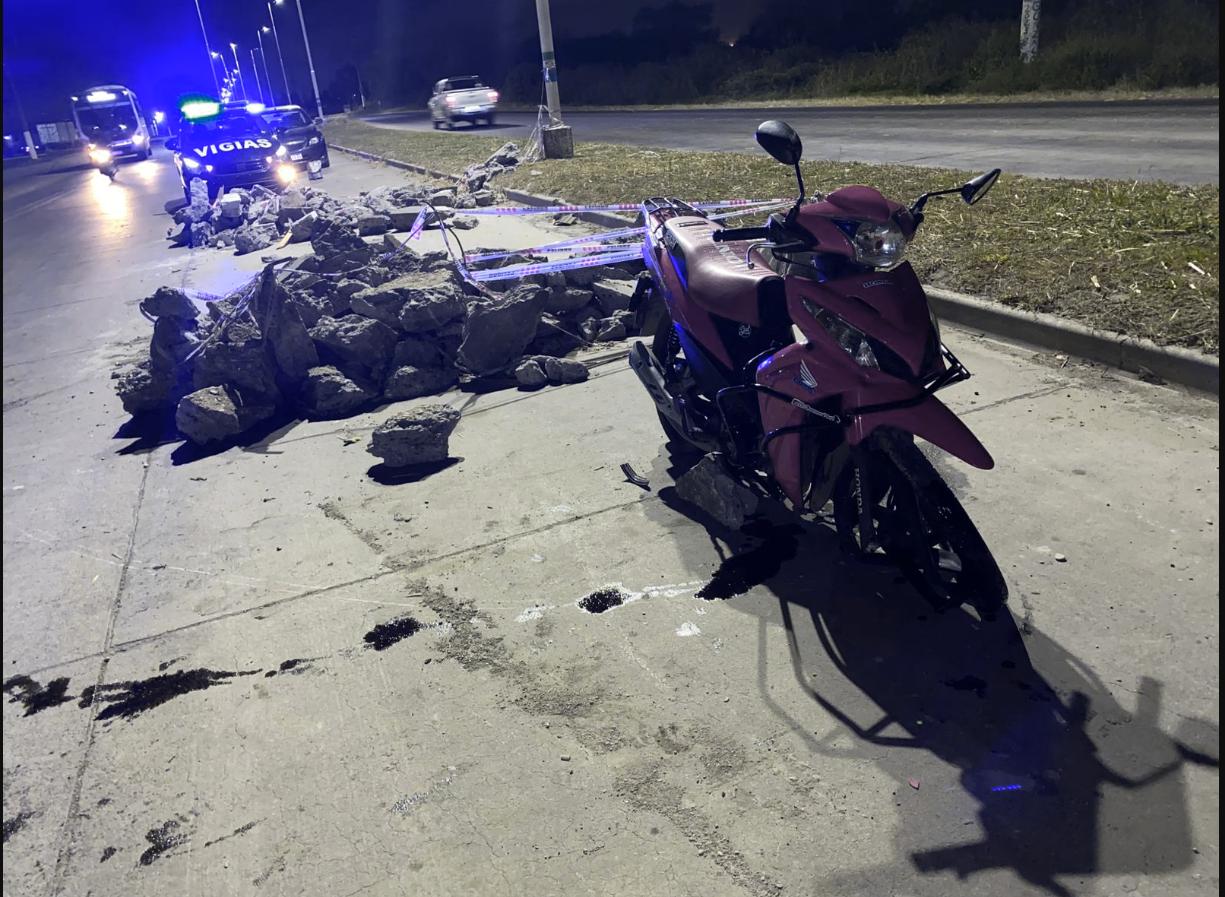 Anoche aproximadamente a las 23:45 horas, el personal policial de la Comisaria de la Banda del Río Salí, tomo conocimiento sobre un siniestro en la vía pública sobre la Ruta 302 al frente de CITRUVIL, cuando una moto Honda Wave color roja colisionó adonde se encontraba una calzada en reparación produciéndose un fuerte impacto contra los escombros sacados de dicha calzada.