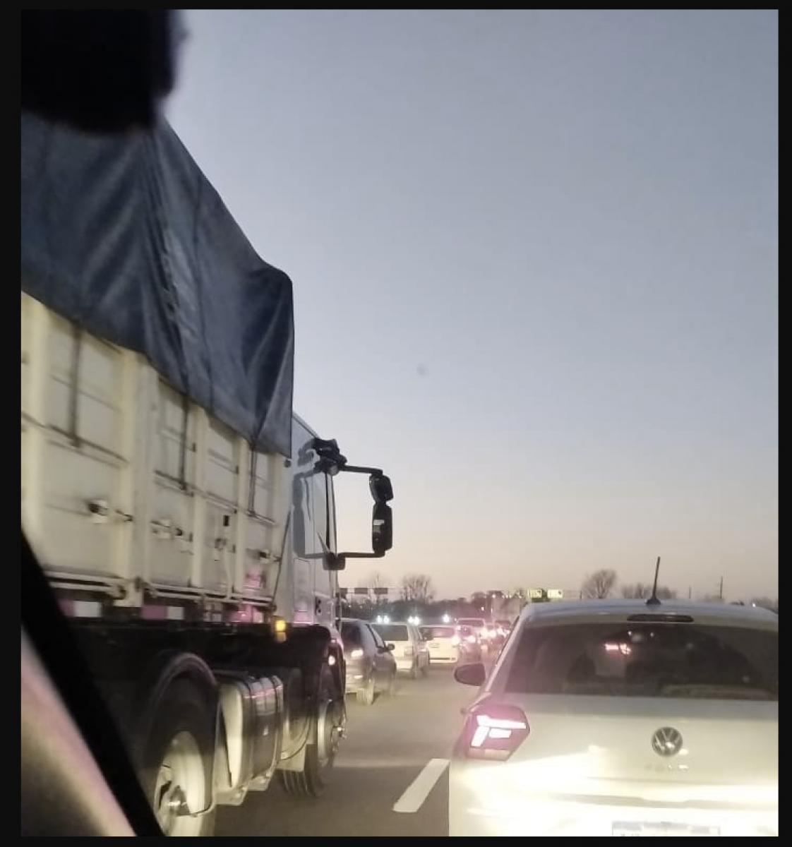 Un Peugeot 307 choco una moto y volaron partes del rodado menor, en la Autopista Circunvalación frente al cementerio del Ángel, tras el fuerte impacto dos personas se encuentran sobre el pavimento.